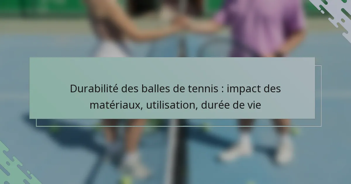 La durabilité des balles de tennis est principalement déterminée par les matériaux utilisés dans leur construction, notamment le caoutchouc pour le noyau et le feutre pour la couche extérieure. Leur durée de vie varie en fonction de la fréquence d’utilisation, des conditions de jeu et des facteurs environnementaux, rendant une évaluation régulière essentielle pour une performance optimale. Les joueurs doivent remplacer les balles de tennis lorsqu’elles montrent des signes d’usure, généralement après plusieurs matchs ou quelques semaines de jeu régulier.