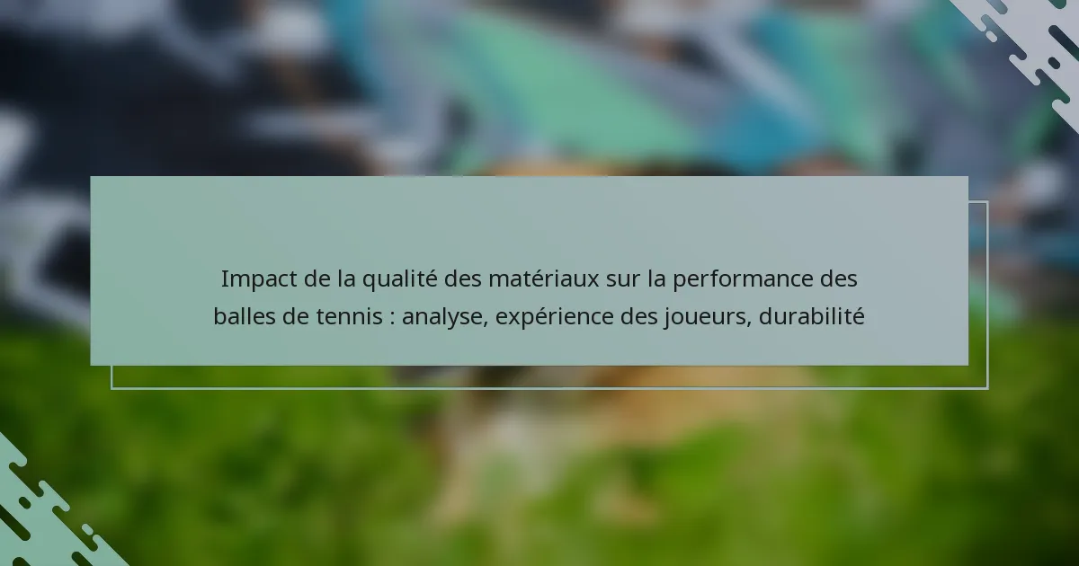 La qualité des matériaux utilisés dans les balles de tennis joue un rôle crucial dans la détermination de leurs caractéristiques de performance, telles que le rebond, la vitesse, l’effet et la durabilité. Des matériaux de haute qualité améliorent non seulement ces indicateurs, mais contribuent également à une expérience de jeu plus agréable et cohérente, influençant les préférences et le jeu sur le court.