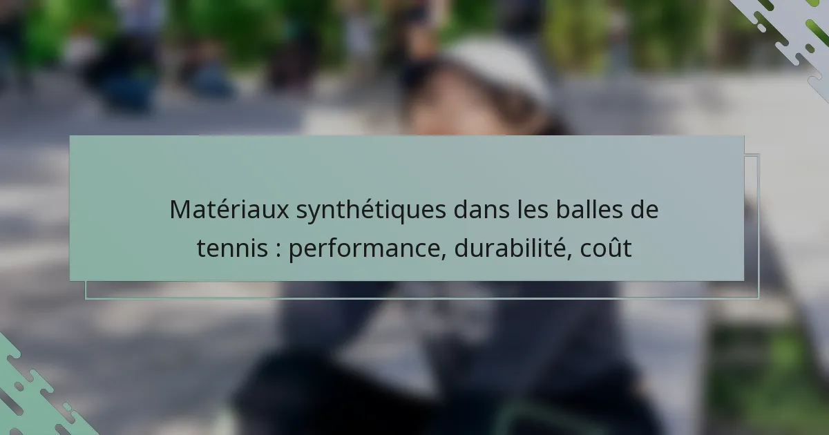 Les matériaux synthétiques influencent significativement le coût des balles de tennis, affectant à la fois leur prix et leur performance. Comprendre ces implications aide les joueurs à choisir la bonne balle pour leurs besoins tout en tenant compte de la valeur à long terme.